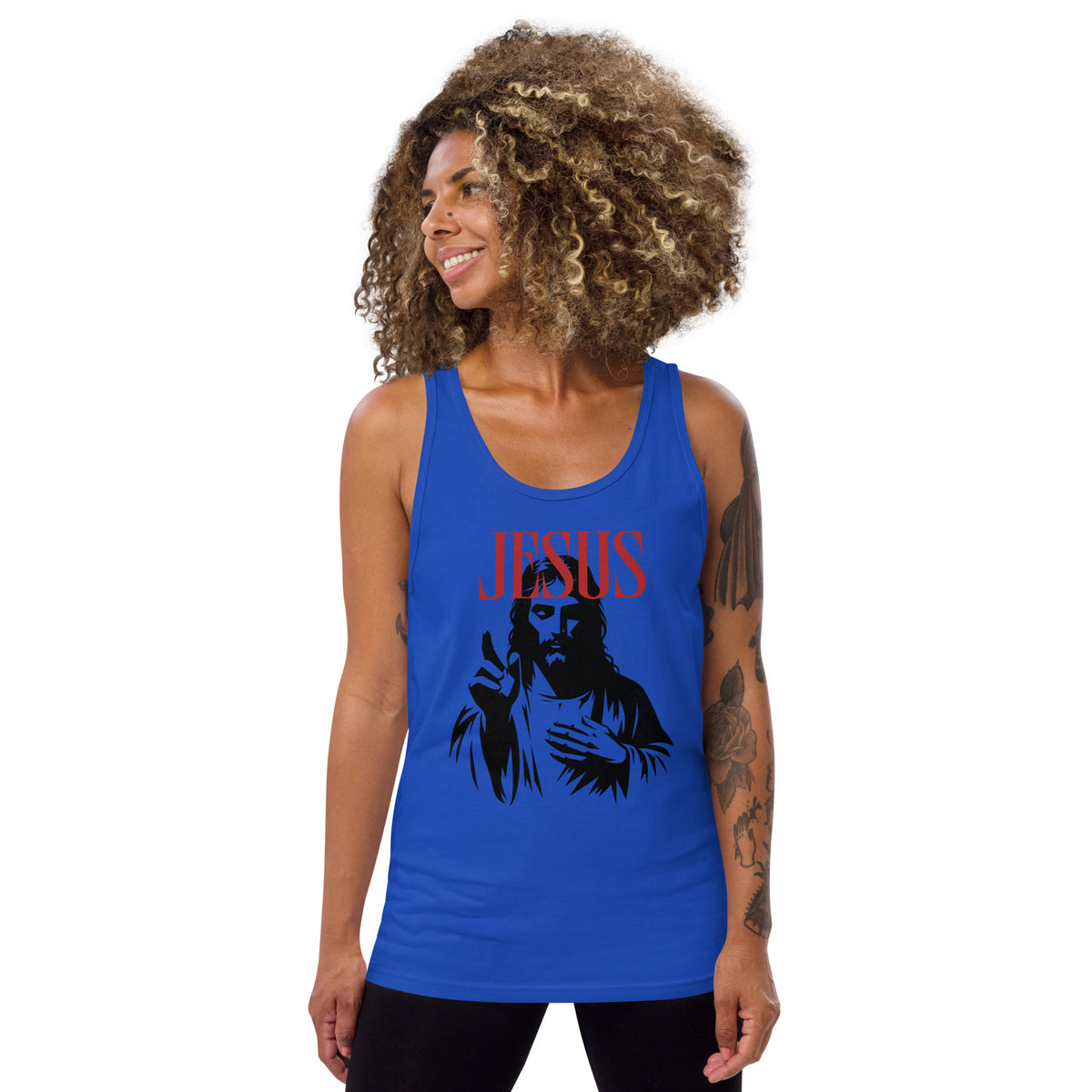 Jesus Red Text Unisex Tank Top - True Royal / XS